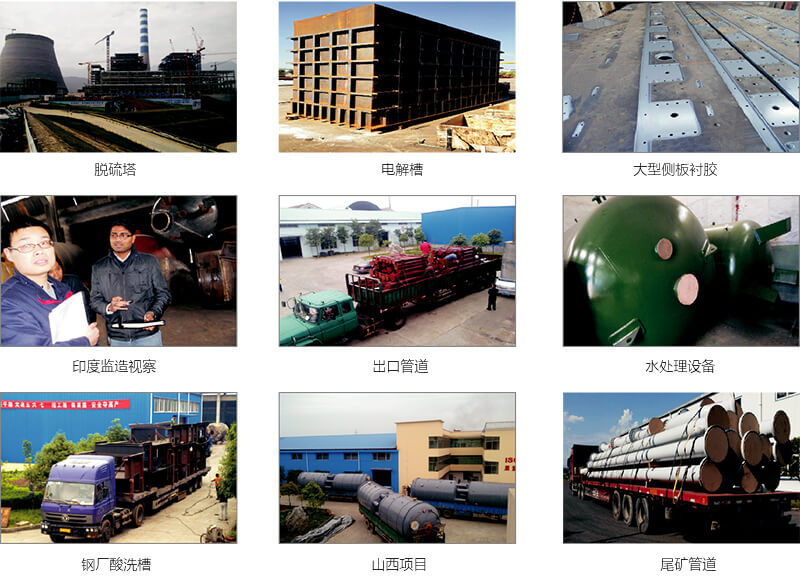 | 熱水硫化橡膠襯里 | 熱水蒸汽本體硫化 | 接觸腐蝕介質(zhì)的大型槽、罐等設(shè)備 | 現(xiàn)場(chǎng)施工 | |